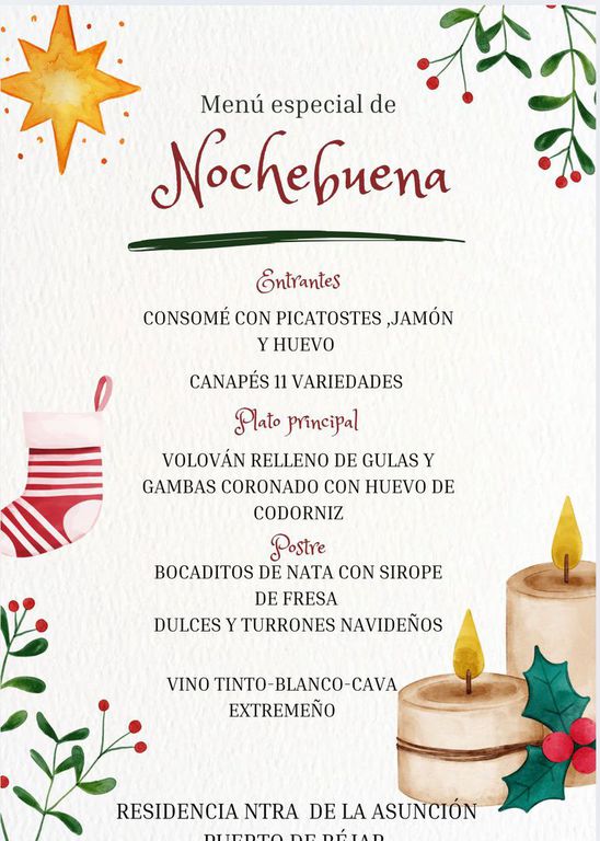 Ya están preparados los menús para las fiestas navideñas... serán elaborados por nuestras cocineras con esmero y cariño para que los puedan disfrutar todos los residentes.