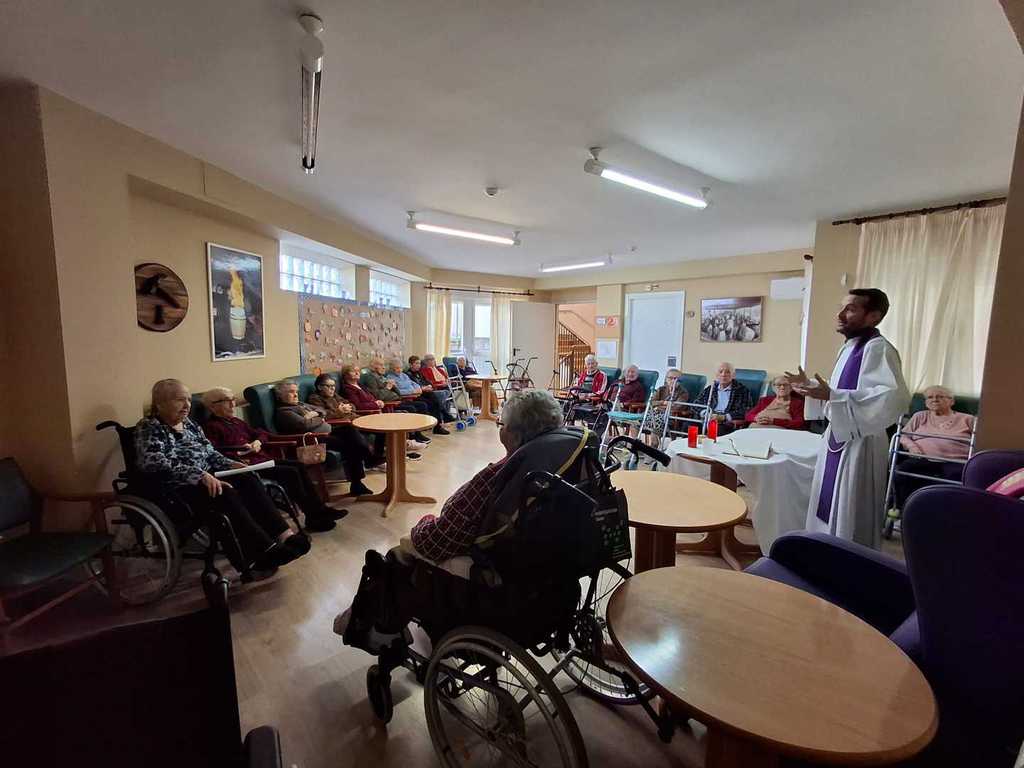 El Padre Francisco, inició la Cuaresma. Se celebró en la residencia una eucaristia en la que se llevó a cabo el rito de la imposición de la ceniza a todos los residentes que quisieron participar.